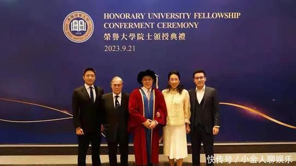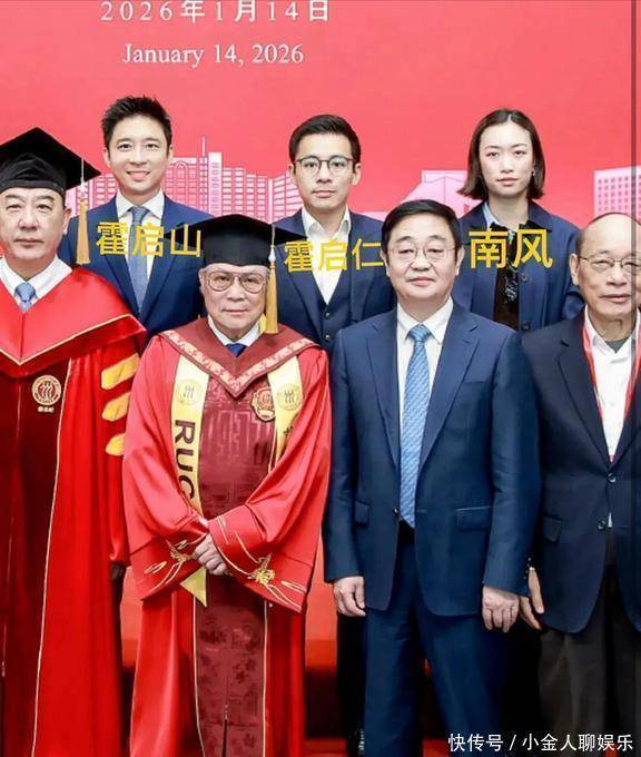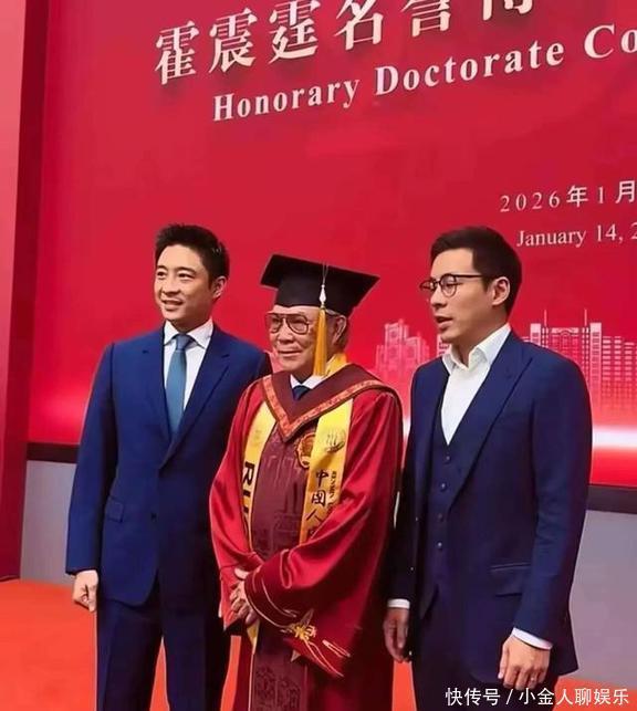 一出来就把大家的眼球都吸引过去了,真是场视觉大餐啊!尤其是霍震霆,差不多快80了,穿着一身亮眼的博士袍,显得他精神焕发,年轻了不少!